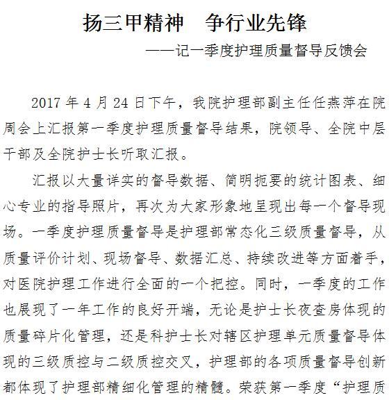 一季度护理质量督导反馈会