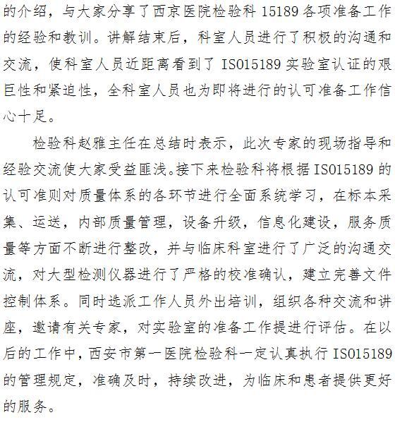 成人导航 检验科邀请专家为ISO15189认可工作指导培训