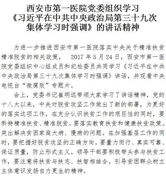 院党委组织学习《习近平在中共中央政治局第三十九次集体学习时强调》的讲话精神