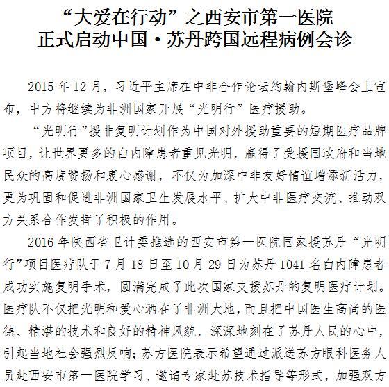 “大爱在行动”之成人导航 正式启动中国·苏丹跨国远程病例会诊