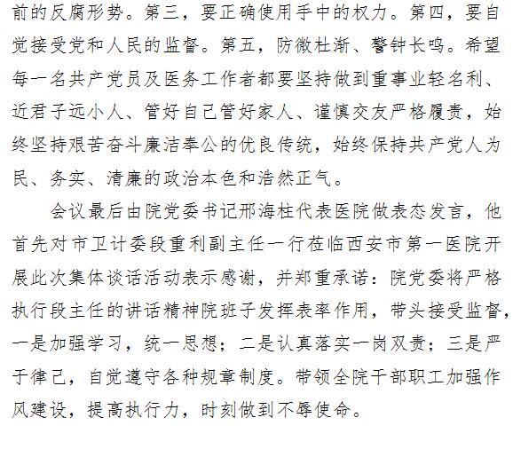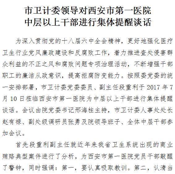 市卫计委领导对成人导航 中层以上干部进行集体提醒谈话