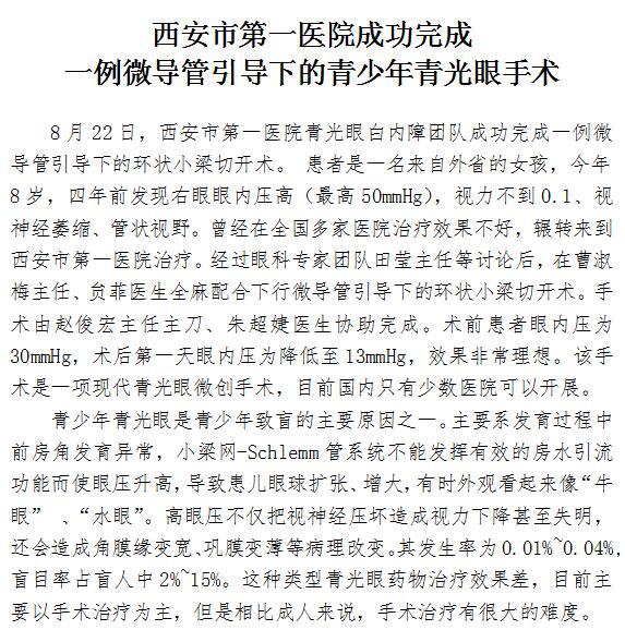 成人导航 成功完成一例微导管引导下的青少年青光眼手术