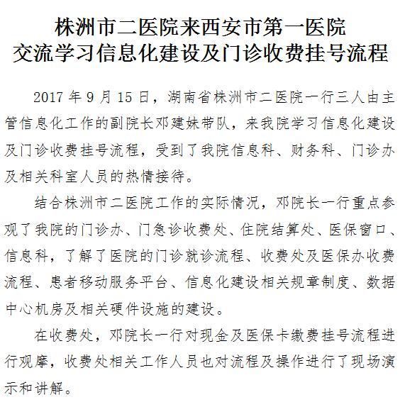 株洲市二成人导航 来成人导航 交流学习信息化建设及门诊收费挂号流程