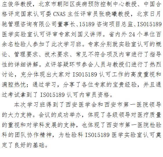 成人导航 成功举办ISO15189医学实验室认可内审员培训班