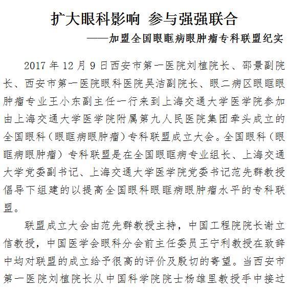 扩大眼科影响 参与强强联合 ——加盟全国眼眶病眼肿瘤专科联盟纪实