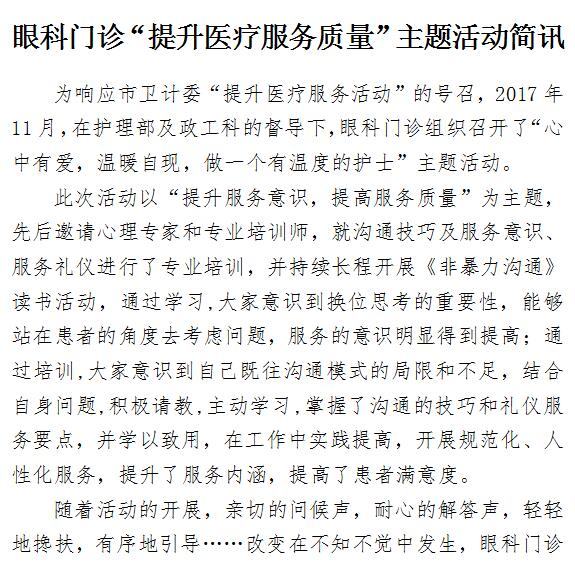 眼科门诊“提升医疗服务质量”主题活动简讯