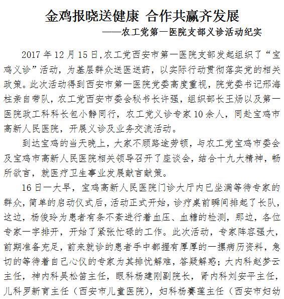 金鸡报晓送健康 合作共赢齐发展 ——农工党第一成人导航 支部义诊活动纪实