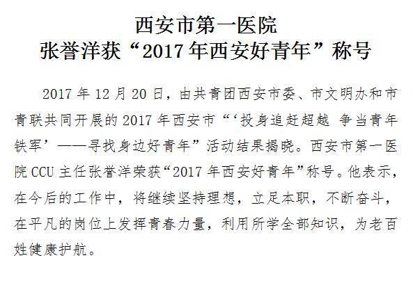 成人导航 张誉洋获“2017年西安好青年”称号