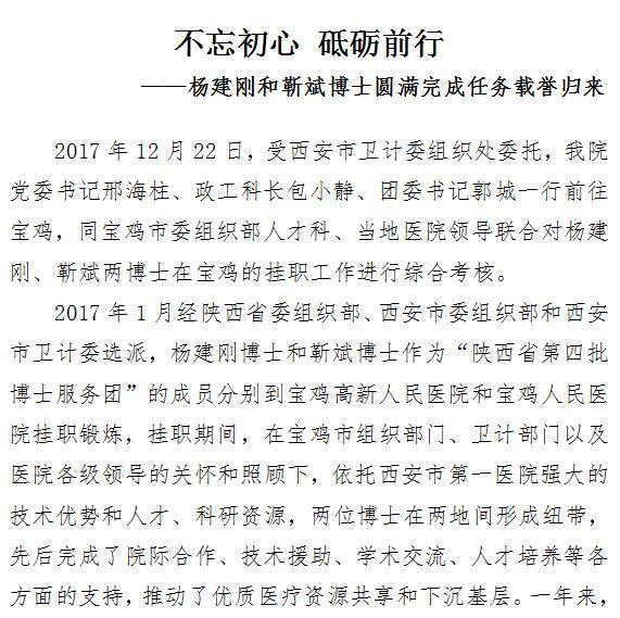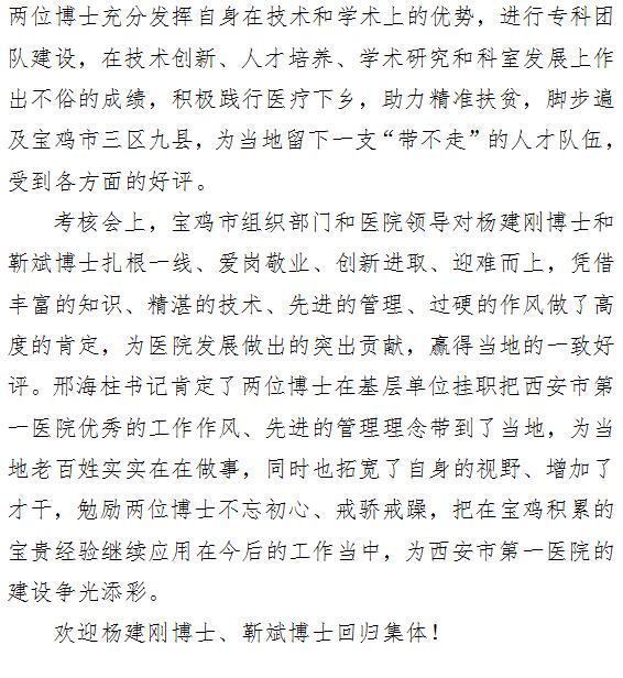 不忘初心 砥砺前行 ——杨建刚和靳斌博士圆满完成任务载誉归来