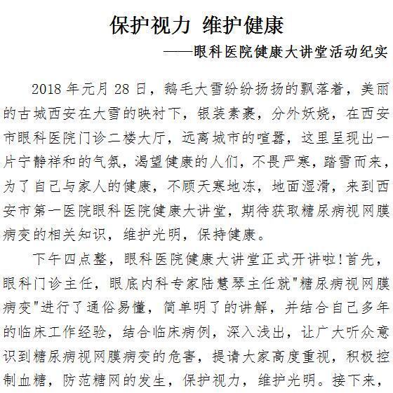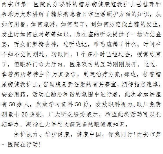 保护视力 维护健康 ——眼科成人导航 健康大讲堂活动纪实