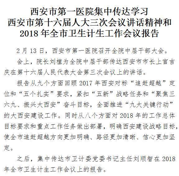 集中传达学习西安市第十六届人大三次会议讲话精神和2018年全市卫生计生工作会议报告
