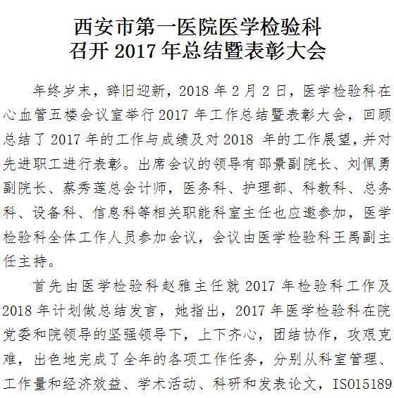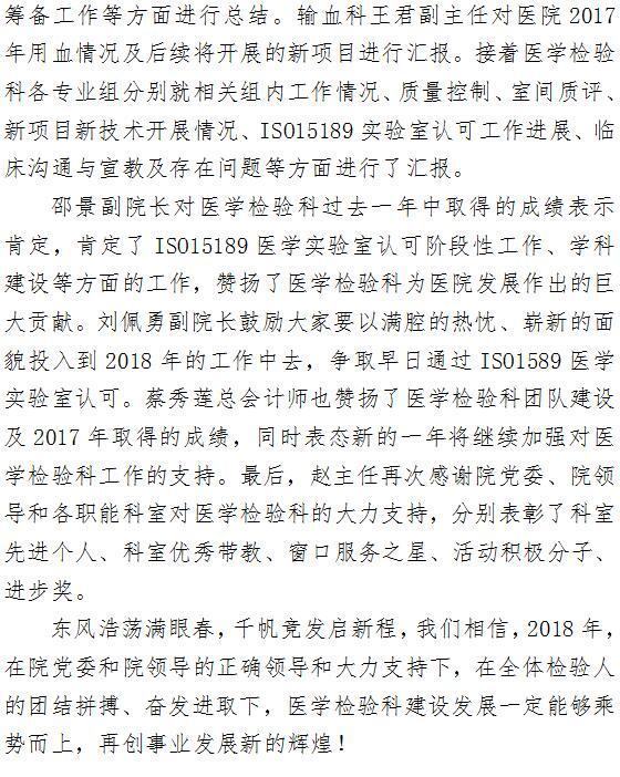 成人导航 医学检验科召开2017年总结暨表彰大会