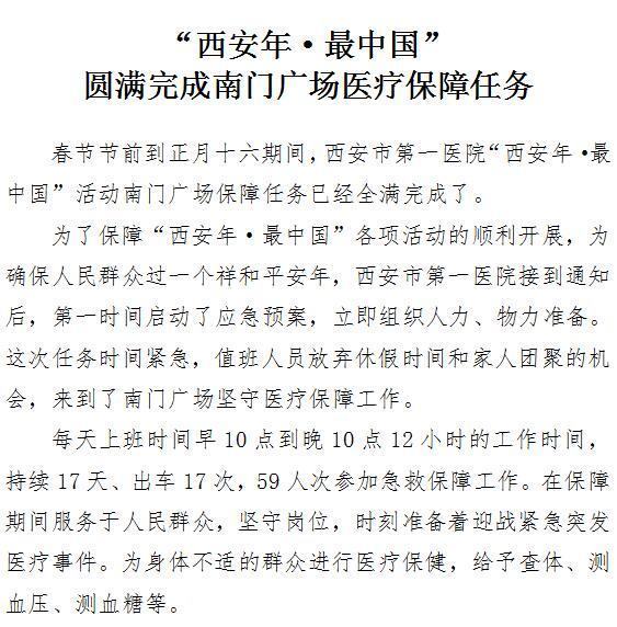 “西安年·最中国”——圆满完成南门广场医疗保障任务