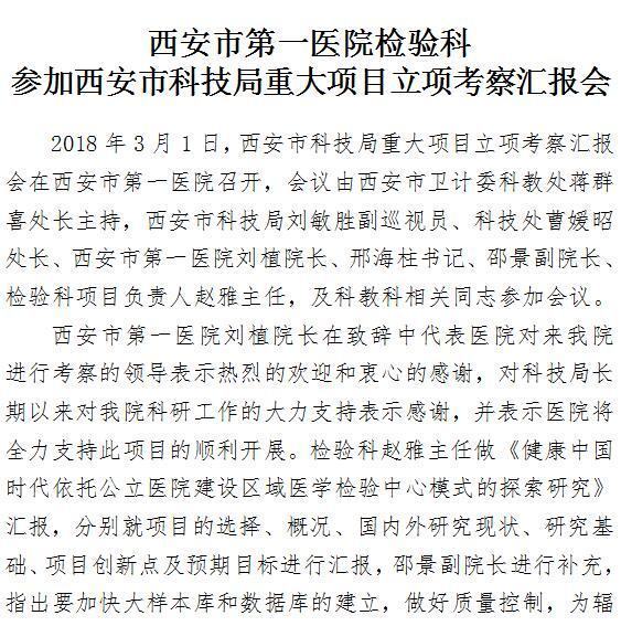 成人导航 检验科参加西安市科技局重大项目立项考察汇报会