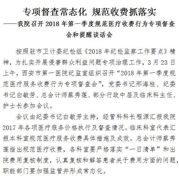 成人导航 召开2018年第一季度规范医疗收费行为专项督查会和提醒谈话会