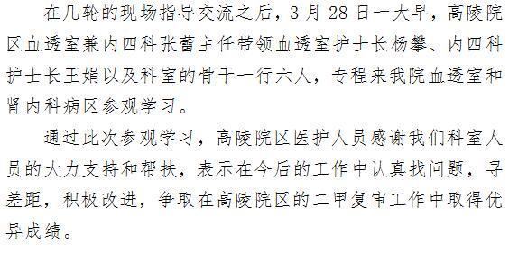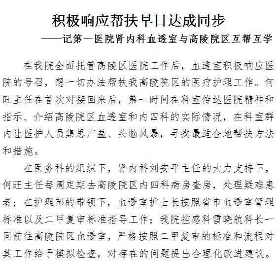 积极响应帮扶早日达成同步 ——记第一成人导航 肾内科血透室与高陵院区互帮互学