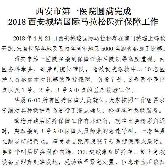 成人导航 圆满完成2018西安城墙国际马拉松医疗保障工作