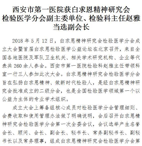 成人导航 获白求恩精神研究会检验医学分会副主委单位、检验科主任赵雅当选副会长