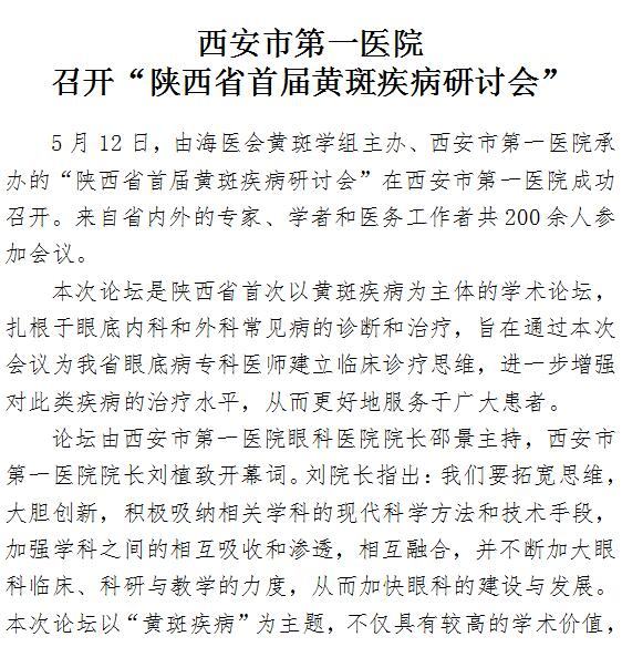 成人导航 召开“陕西省首届黄斑疾病研讨会”