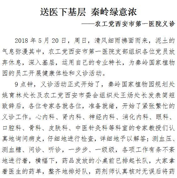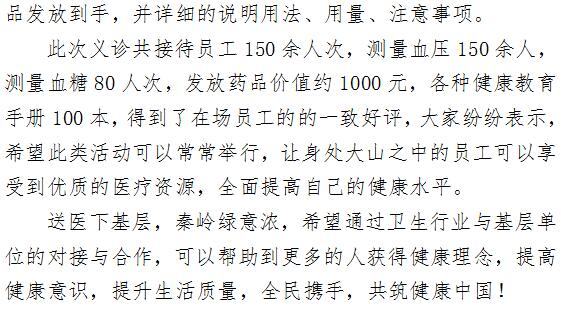 送医下基层 秦岭绿意浓 ——农工党成人导航 义诊
