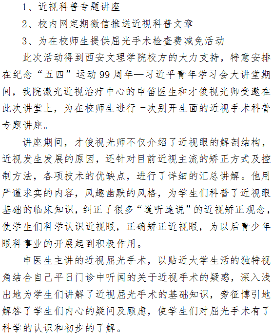 院校合作 共建科学近视矫正平台 ——“6.6”爱眼日走进校园系列活动