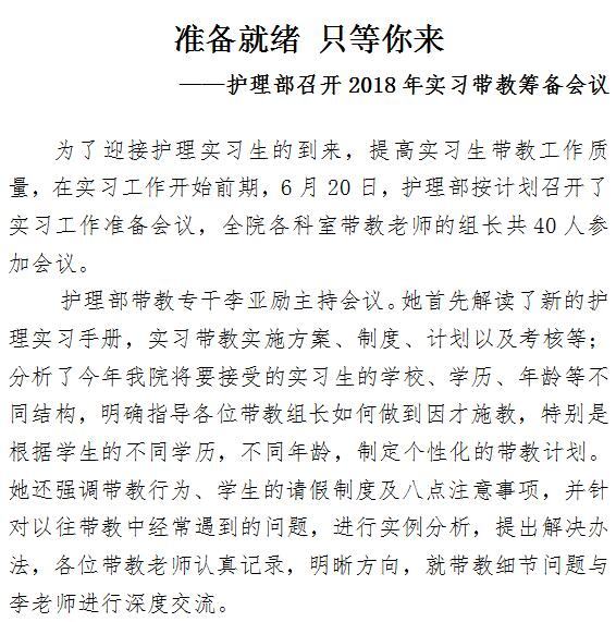 准备就绪 只等你来 ——护理部召开2018年实习带教筹备会议