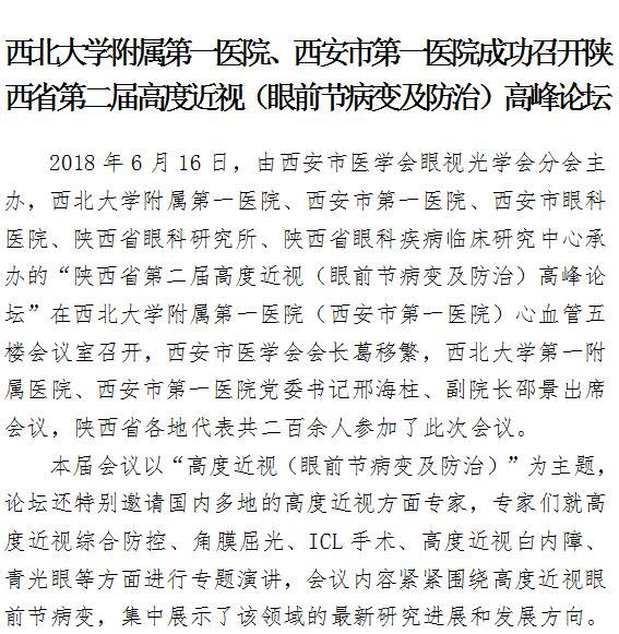 西北大学附属第一成人导航 、成人导航 成功召开陕西省第二届高度近视高峰论坛