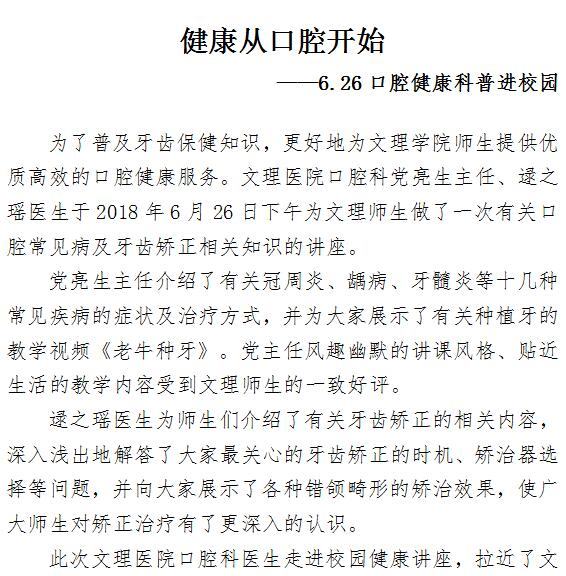 健康从口腔开始 ——6.26口腔健康科普进校园