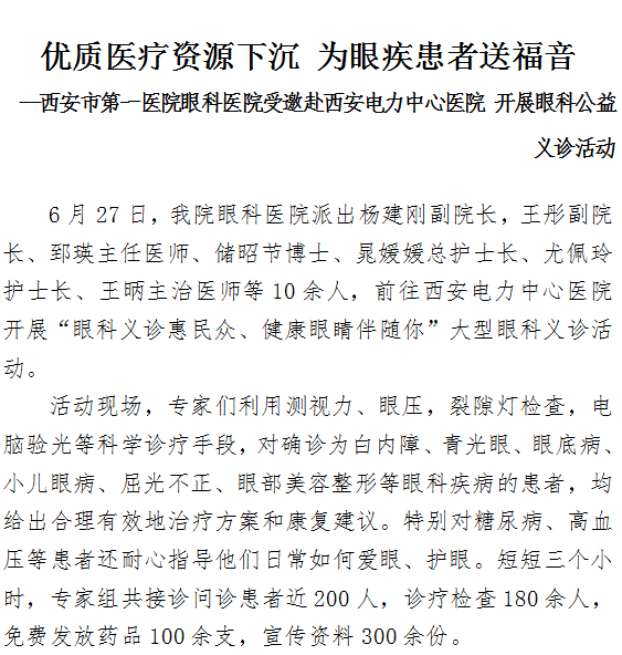 成人导航 眼科成人导航 受邀赴西安电力中心成人导航 开展眼科公益义诊活动