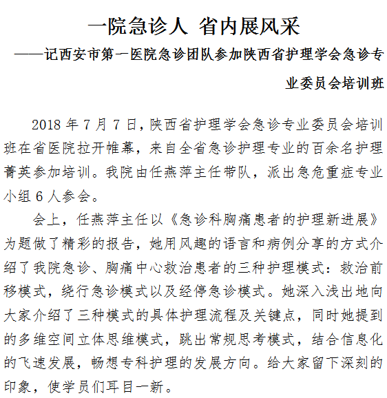 记成人导航 急诊团队参加陕西省护理学会急诊专业委员会培训班