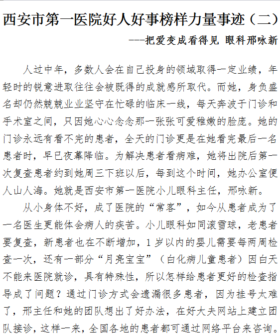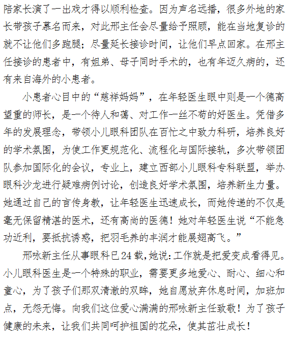 成人导航 好人好事榜样力量事迹(二) ---把爱变成看得见 眼科邢咏新