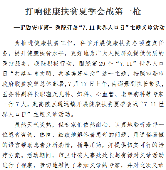 打响健康扶贫夏季会战第一枪 —记成人导航 开展“7.11世界人口日”主题义诊活动