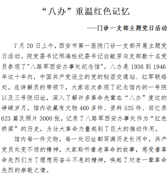 “八办”重温红色记忆 ——门诊一支部主题党日活动