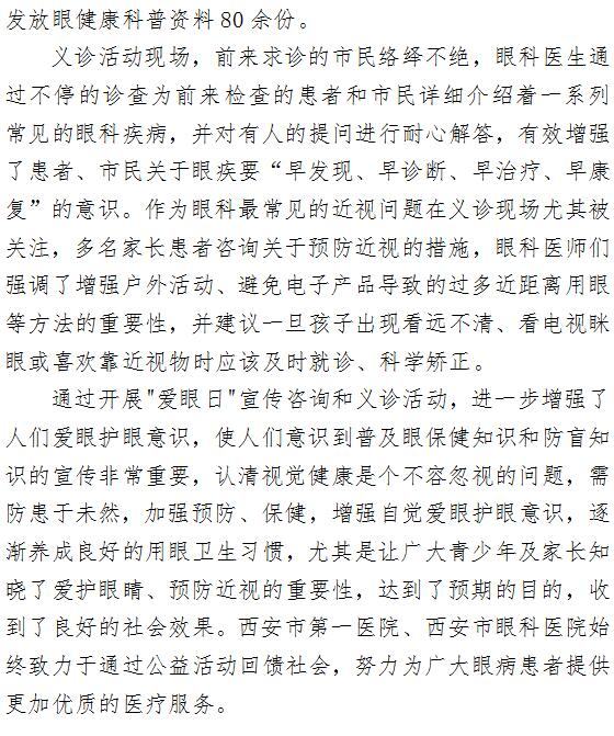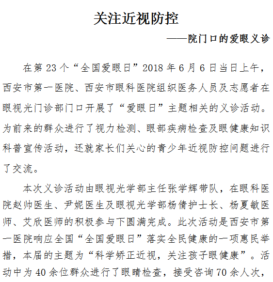 关注近视防控 ——院门口的爱眼义诊