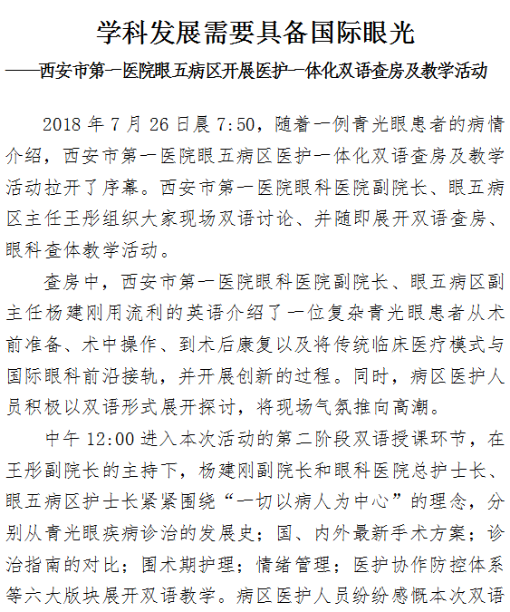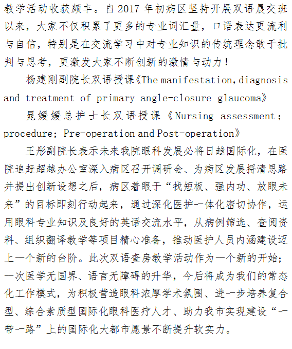 学科发展要具备国际眼光—成人导航 眼五病区开展医护一体化双语查房及教学活动