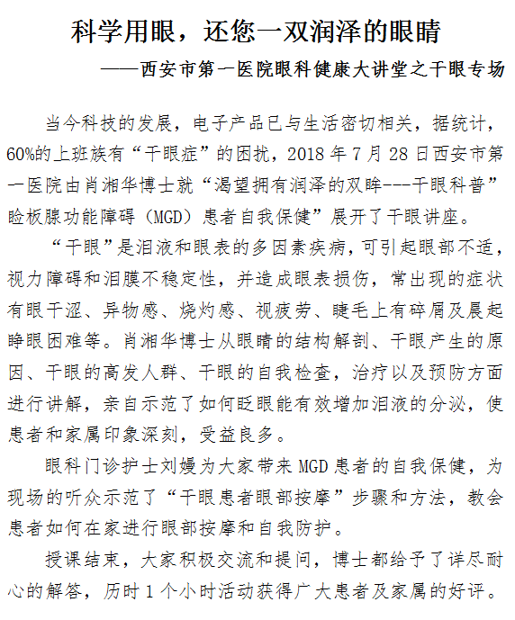 科学用眼,还您一双润泽的眼睛--成人导航 眼科健康大讲堂之干眼专场