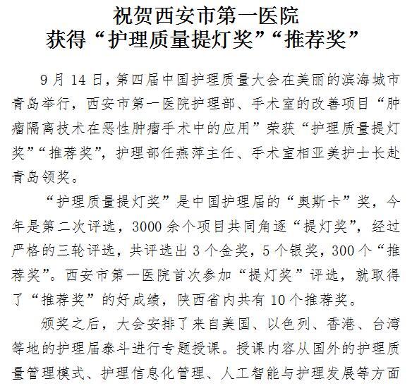 祝贺成人导航 获得“护理质量提灯奖”“推荐奖”