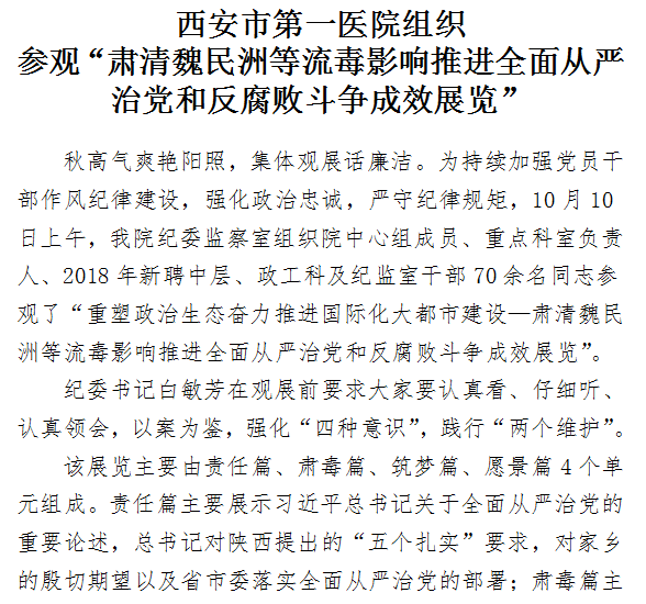 参观“肃清魏民洲等流毒影响推进全面从严治党和反腐败斗争成效展览”