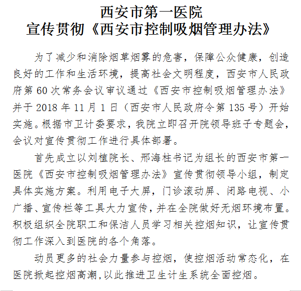 成人导航 宣传贯彻《西安市控制吸烟管理办法》