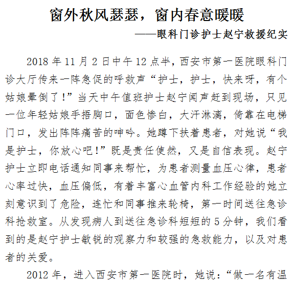 窗外秋风瑟瑟,窗内春意暖暖——眼科门诊护士赵宁救援纪实