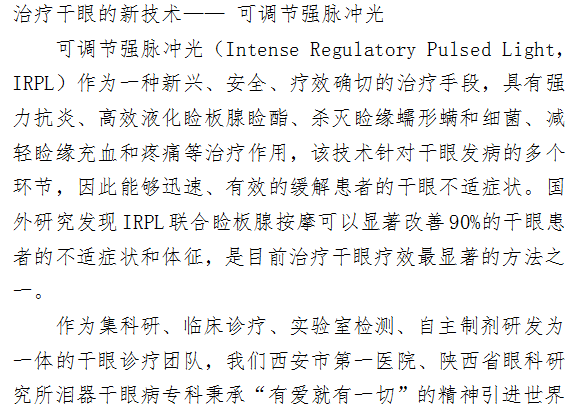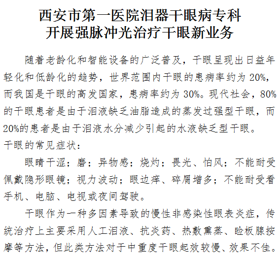 成人导航 泪器干眼病专科开展强脉冲光治疗干眼新业务