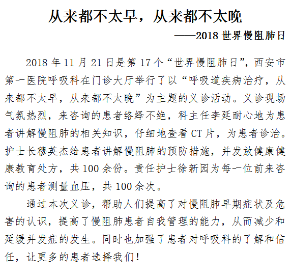 从来都不太早,从来都不太晚 ——2018世界慢阻肺日