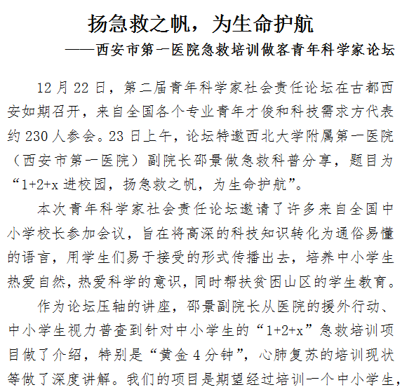 扬急救之帆,为生命护航 ——成人导航 急救培训做客青年科学家论坛