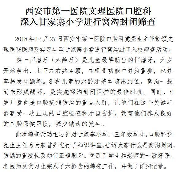 成人导航 文理成人导航 口腔科深入甘家寨小学进行窝沟封闭筛查