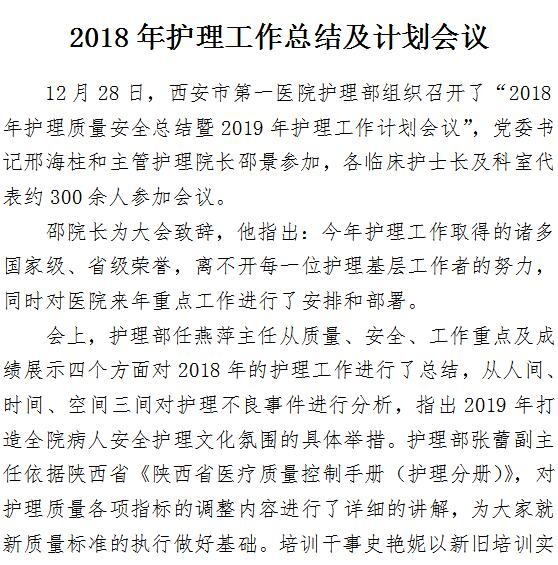 成人导航 召开“2018年护理质量安全总结暨2019年护理工作计划会议”
