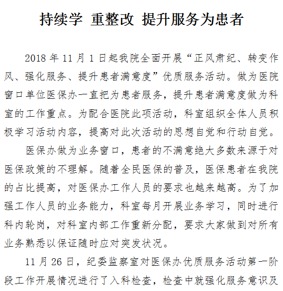 持续学 重整改 提升服务为患者