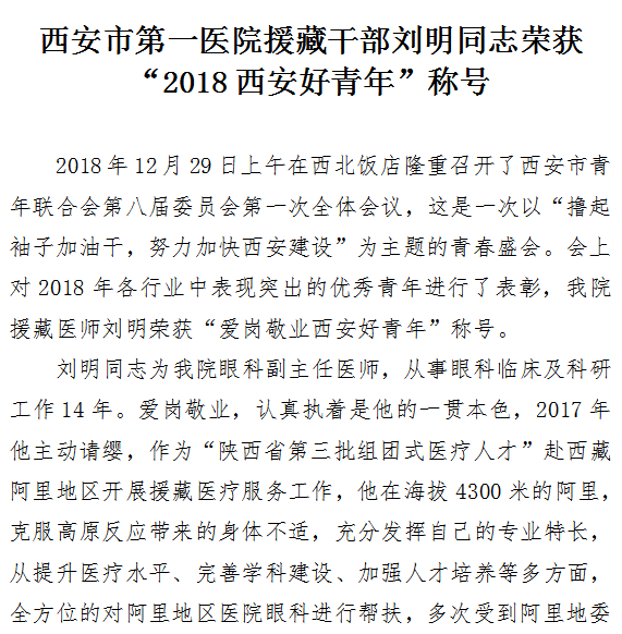 成人导航 援藏干部刘明同志荣获“2018西安好青年”称号