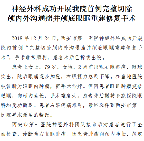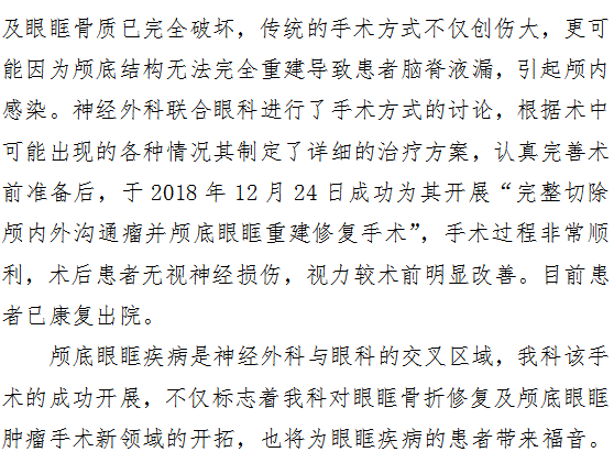 神经外科成功开展成人导航首例完整切除颅内外沟通瘤并颅底眼眶重建修复手术