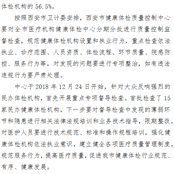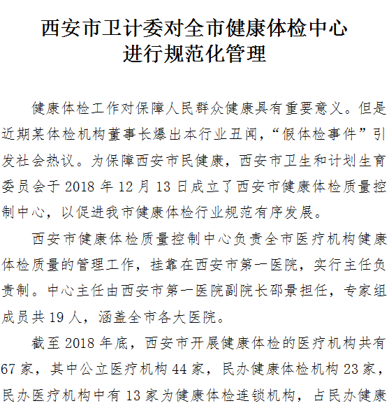 西安市卫计委对全市健康体检中心进行规范化管理