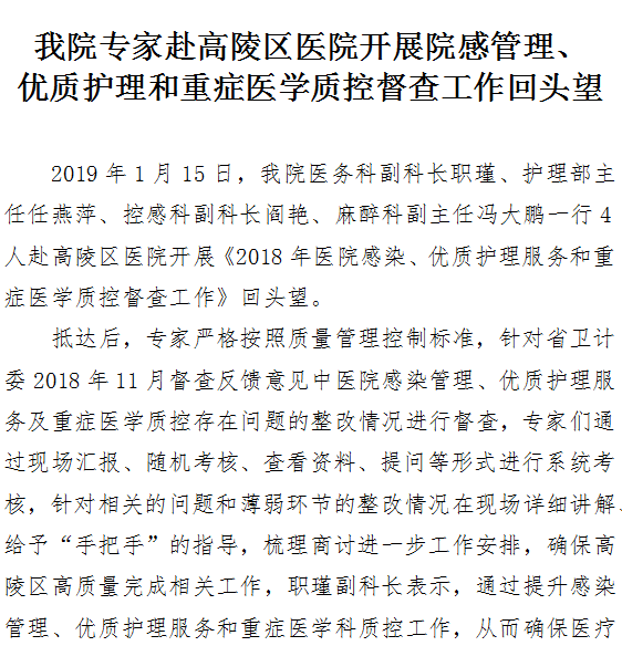 成人导航专家赴高陵区成人导航 开展院感管理、优质护理和重症医学质控督查工作回头望
